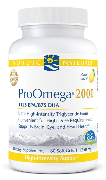 ProOmega 2000 delivers 2,000 mg of EPA and DHA in the highly absorbable 90-plus percent triglyceride molecular form in just two soft gels.*