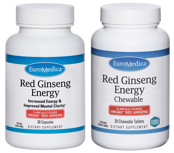 Red Ginseng Energy and Red Ginseng Energy Chewable with HRG80 delivers seven times more rare, noble ginsenosides than conventional ginseng. For your patients, that means maximum benefits. According to the company, leading research shows amazing results: