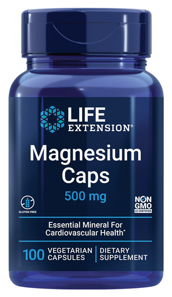 Life Extension’s Magnesium Caps contain magnesium oxide, magnesium citrate and succinate, providing a total of 500 milligrams of well-absorbed magnesium.