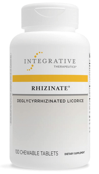 Rhizinate is deglycyrrhizinated licorice (DGL) in a chewable formula for soothing digestive relief.*